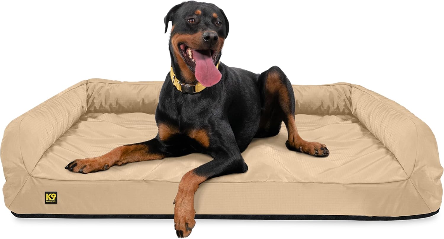 K9 Ballistics Tough Orthopedic X-Large Bolster Dog Bed - Washable, Durable and Water Resistant Dog Bed - Made for (XL) Big Dogs, 54"x38", Sandstone