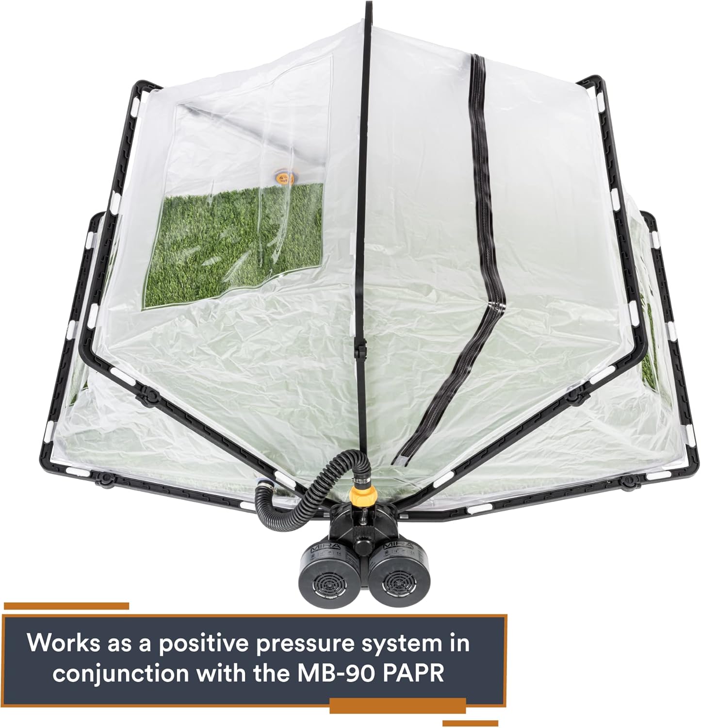 - SUPERIOR PROTECTION - The Ark uses a powered air-purifying respirator (PAPR) to create a compact, protective enclosure for your cherished pets. It is effectively a โdog gas mask,โ providing a constant stream of filtered air into the spacious interior. Works as a positive pressure system in conjunction with the MB-90 PAPR (sold separately and required for operation)