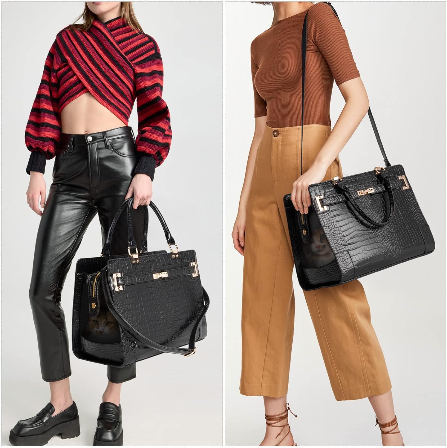 - π±[ Designer Pet carrier ] Sturdy hard-sided construction and comfortable soft-padded interior. Cozy and perfect place to rest, it is able to release the anxiety of your pet. A fixed leash inside keep pet from running out.
