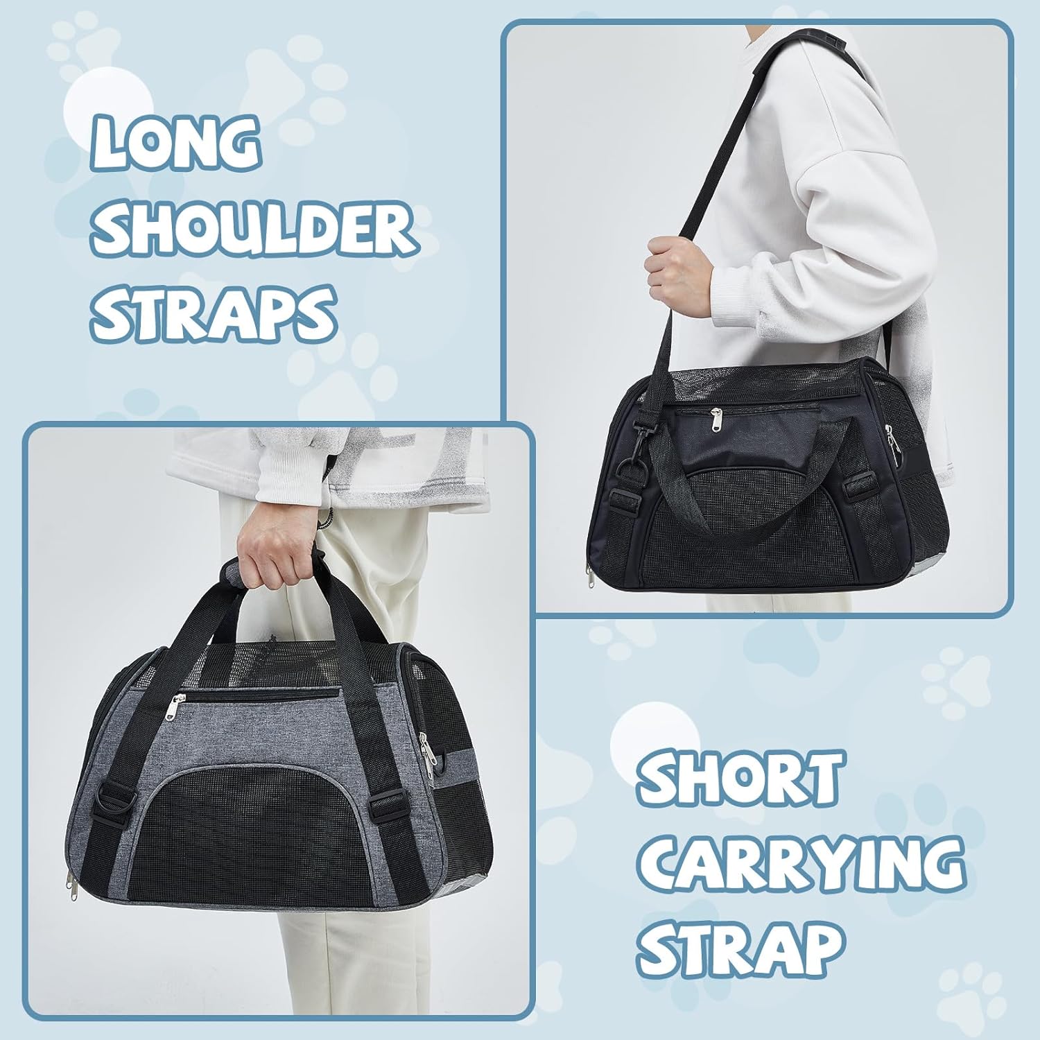 Sweetude 4 Pcs Cat Carrier Soft-Sided Pet Carrying Bag for Cat Under 13 Lbs, 16.9 x 11x 7.5 Inch, Portable Foldable Comfortable Bag for Small Pet Travel(Black, Gray)