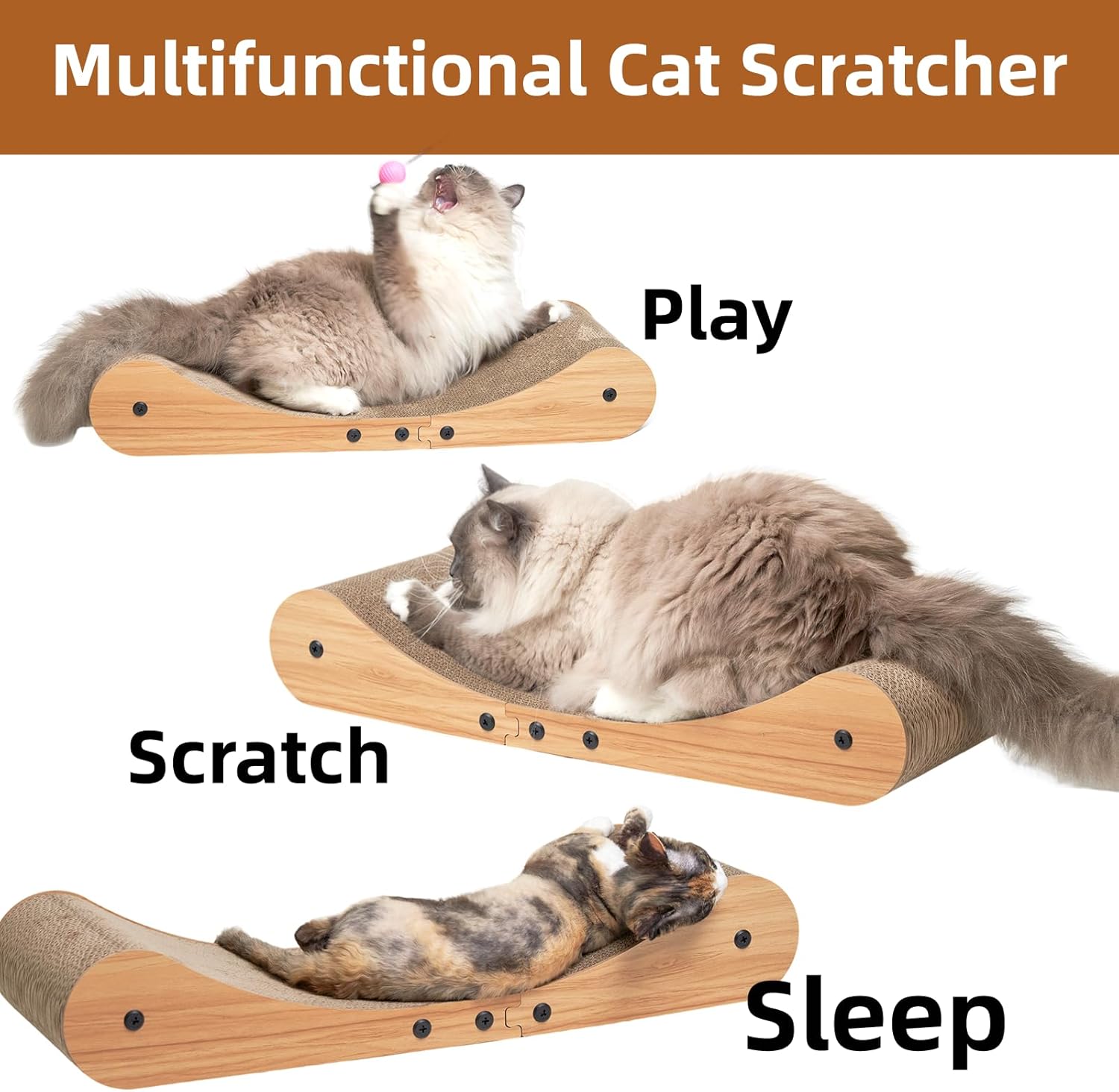 - Unique Design - Featuring with unique curved design, the cat scratching bed provides a support for your furry friendโs neck. The curved structure of the cat bed is specially designed for cats, and it is easy for cats to nap, play and scratch.