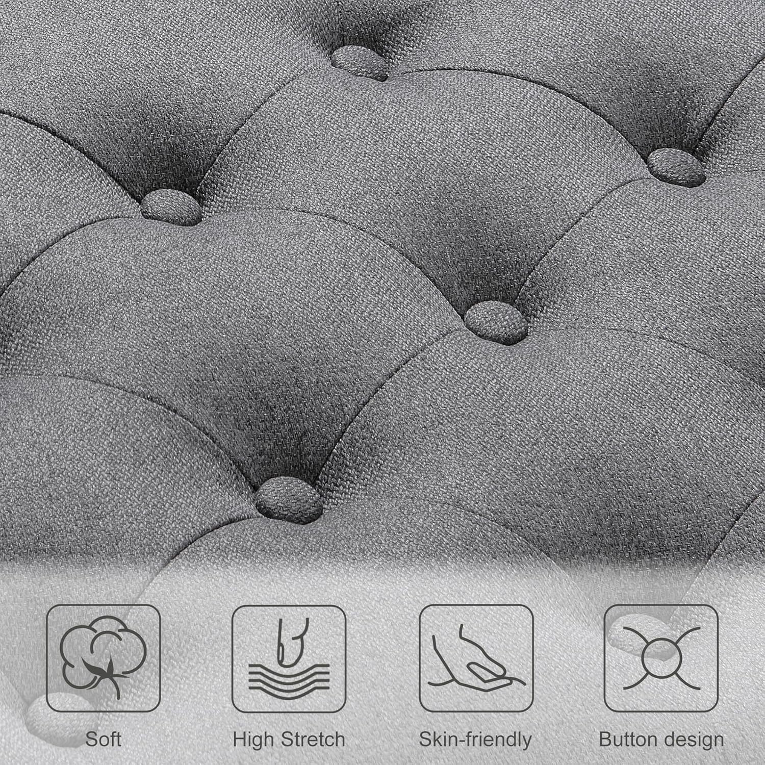 Ottoman with Storage,50.2-inch Upholstered End of Bed Storage Bench for Bedroom,for The Living Room,for Entryway, with Rivets & Button and Safety Hinges,Detachable (Grey)