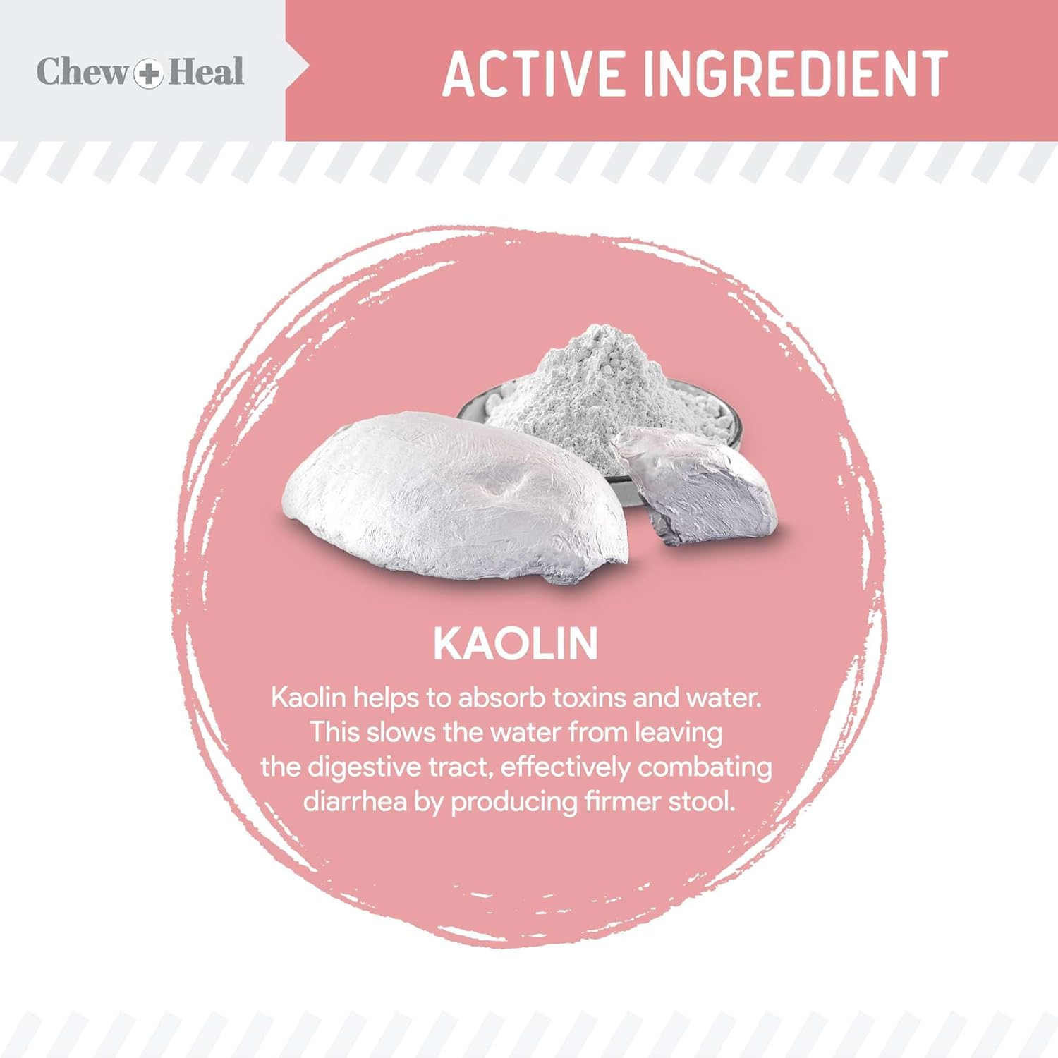- Kaolin helps absorb water to make the stool more firm, reducing diarrhea. It also helps absorb toxins and remove them from the gut.