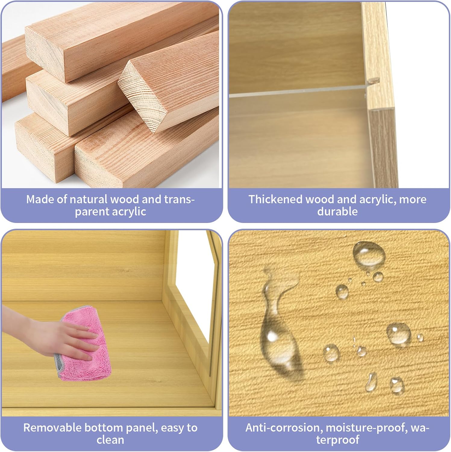 - Natural and Modern Fusion: The FHNI reptile terrarium tank is crafted from thick natural wood and thick clear acrylic materials, featuring eccentric bolt assembly for enhanced stability and durability; Please note: This reptile enclosure is not suitable for water storage