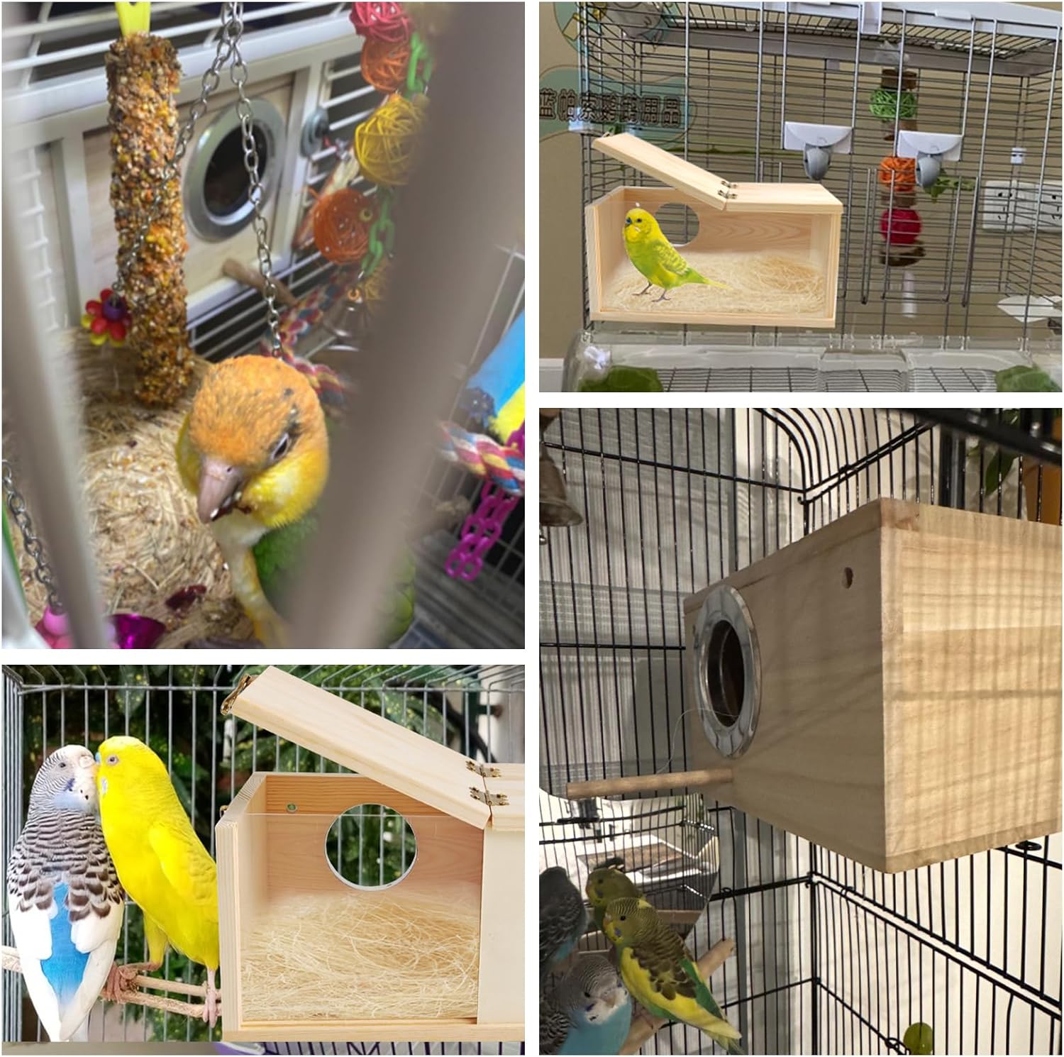 - Multifunctional Bird Box:Bird Breeding Box is a warm place,parrot live to rest & play. help train nesting function of bird.Comfortable & safe lovebird nesting box give bird sense of security,encourage pet to reproduce