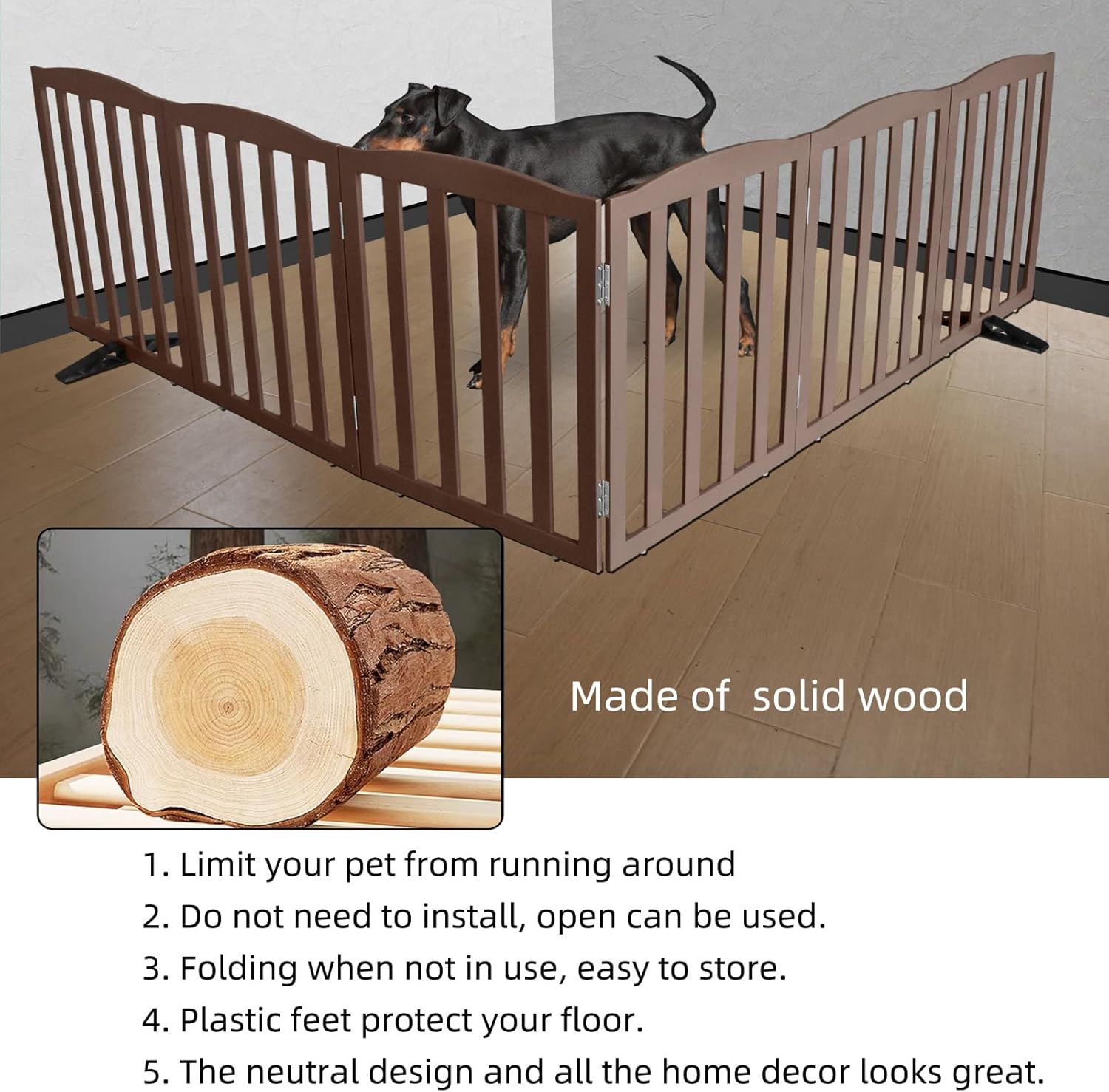 ZJSF Foldable Freestanding Indoor Dog Gate for House Wood Long Pet Gates Dog Fence for Stairs Puppy Gates for Hallways, Puppy Gate,Support Feet Included, Brown, 24 "Height-6 Panels