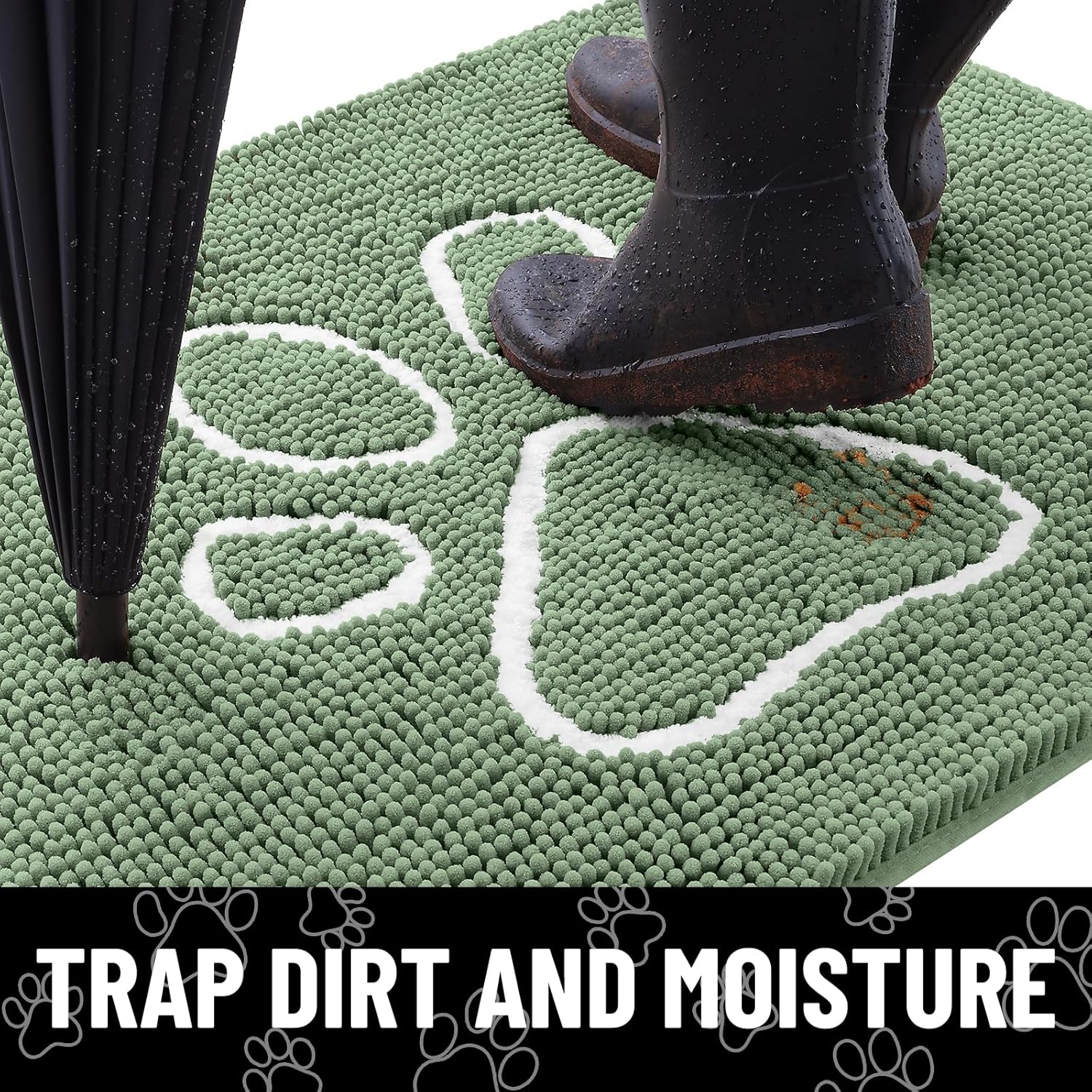Smiry Dog Door Mat for Muddy Paws, Absorbent Dirt Trapper Non Slip Quick Dry Washable Chenille Mat for Mud Dogs, Entry Rug for Indoor and Outdoor (48x30 Inches, Olive Green and White)